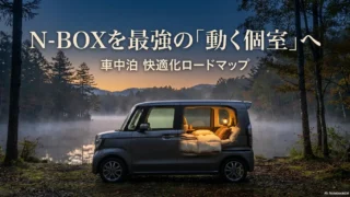 N-BOX車中泊はニトリのマットだけでは寒い?実際に泊まって分かった段差解消と底冷え対策を公開。シェード自作や電源確保で、朝まで爆睡できる快適個室の作り方を伝授します。